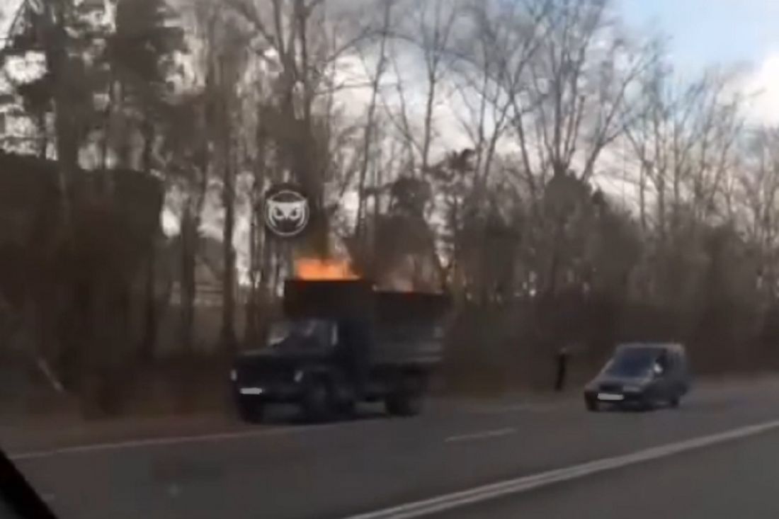 На видео попал загоревшийся на трассе в Пензе грузовик