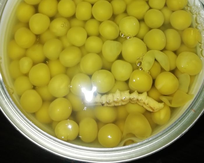 Открыв ее, автор поста в группе «Черный список Пенза» социальной сети «ВКонтакте», помимо горошка, увидел на поверхности гусеницу белого цвета. Покупатель был шокирован и сфотографировал ее в нескольких ракурсах.
