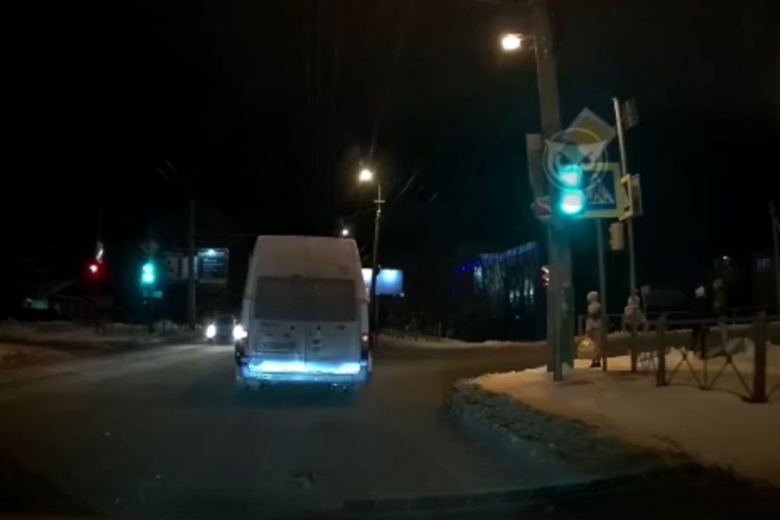 В седьмом часу вечера воскресенья автомобиль с регистратором ехал по улице Пушкина. Внезапно на перекрестке из-за маршрутки материализовался человек, одетый в нечто вроде кигуруми розового цвета с капюшоном. Его голые ноги обращали на себя внимание в свете фар.