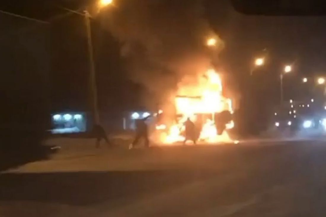 Грузовой автомобиль в момент съемки пылал, а вокруг него бегали трое мужчин. «Кошмар»,- отреагировали в комментариях.