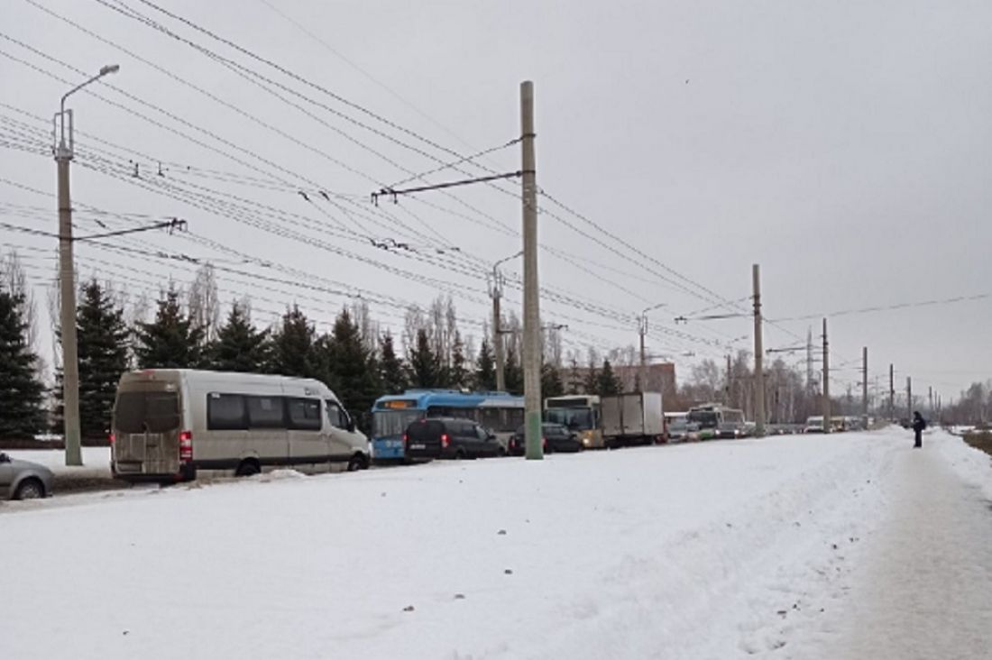 По словам водителей, на улице Стасова образовалась огромная пробка. Автомобили стоят примерно от клинической больницы №6 до дворца спорта «Буртасы».