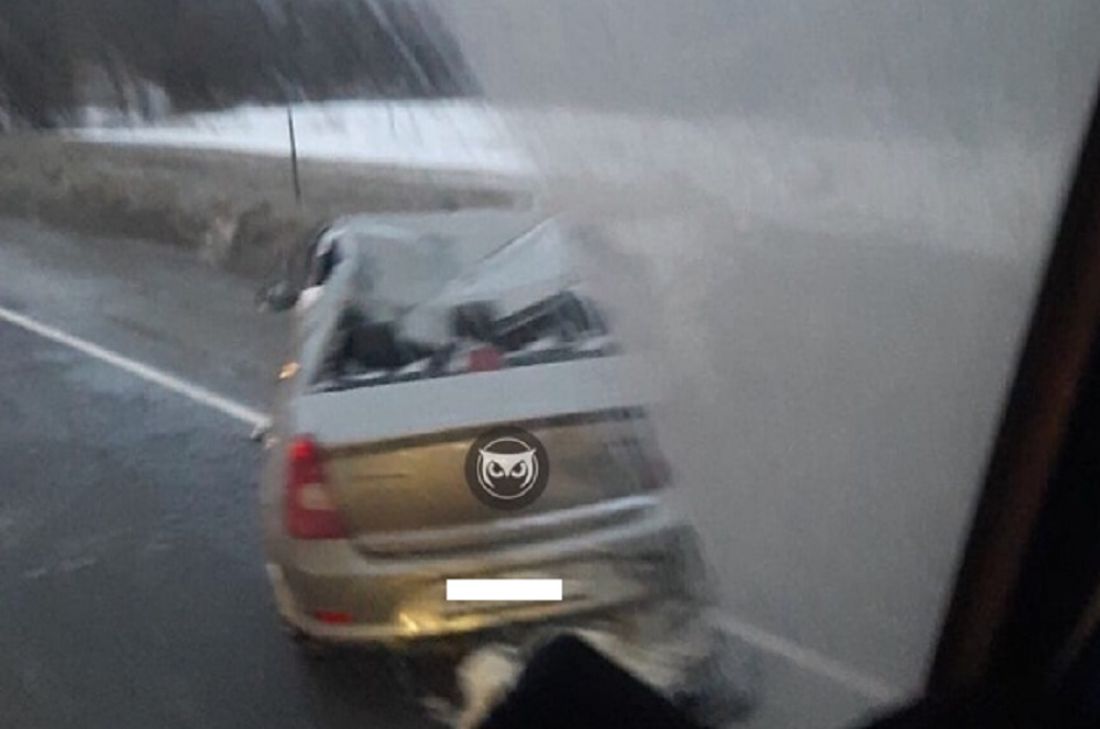 Об аварии возле села Широкоис стало известно сегодня около пяти часов вечера. Одним из участников ДТП стал легковой автомобиль, который получил довольно странные повреждения. У него серьезно покорежена крыша, которая буквально вмялась вовнутрь, также разбито заднее стекло. Кроме того, видны вмятины с водительской стороны и в районе заднего бампера. По снимку можно предположить, что машина либо столкнулась с грузовиком, либо оказалась перевернута в результате столкновения.