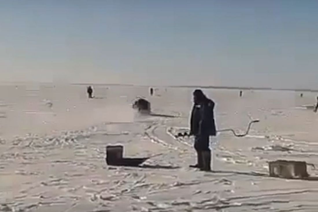 По льду водоема мимо рыбаков промчался «призрачный гонщик». Видео