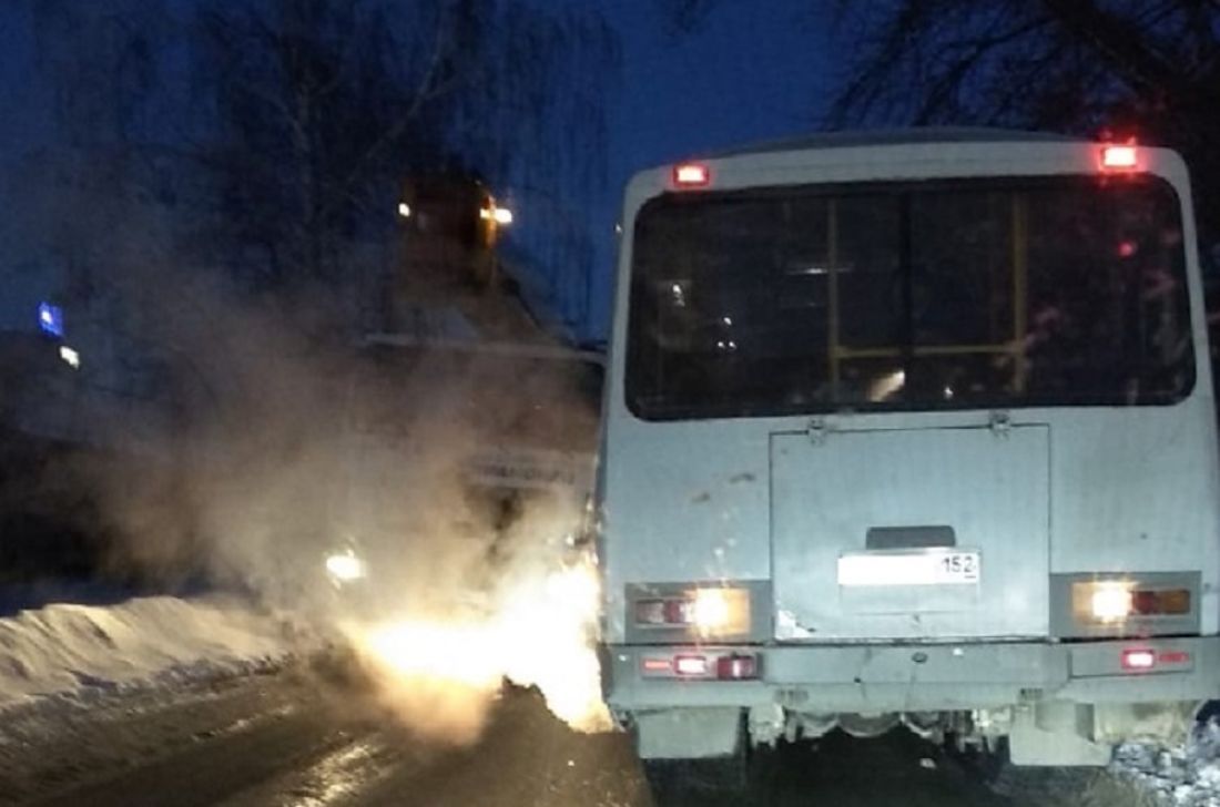 «Не могут разъехаться». В Пензе дорогу перекрыли автобус и автокран