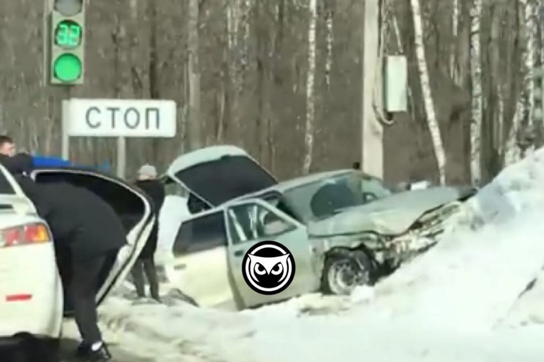 Одна из машин, предположительно марки «ВАЗ-2112», получила сильные повреждения передней части и вылетела с дороги в сугроб. Вторая раскуроченная легковушка – «ВАЗ-2110» – осталась на проезжей части, у нее деформировано переднее крыло, капот, колесо, задета и задняя часть кузова.