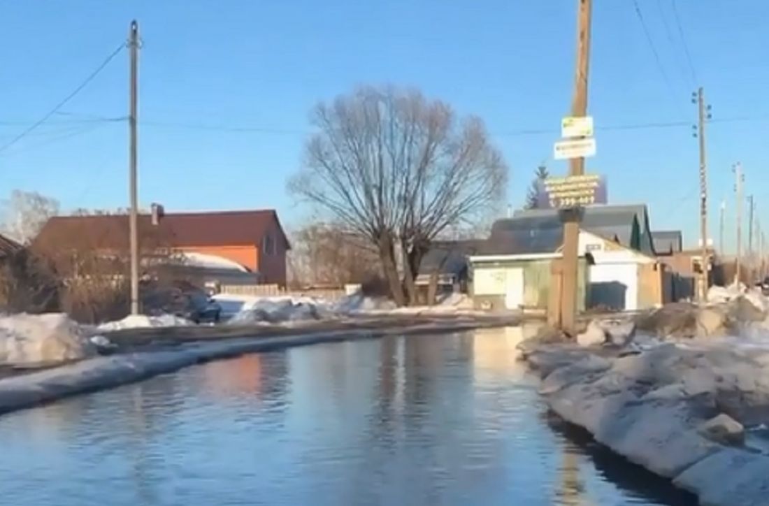На видео запечатлена залитая водой дорога, съемка ведется из машины.