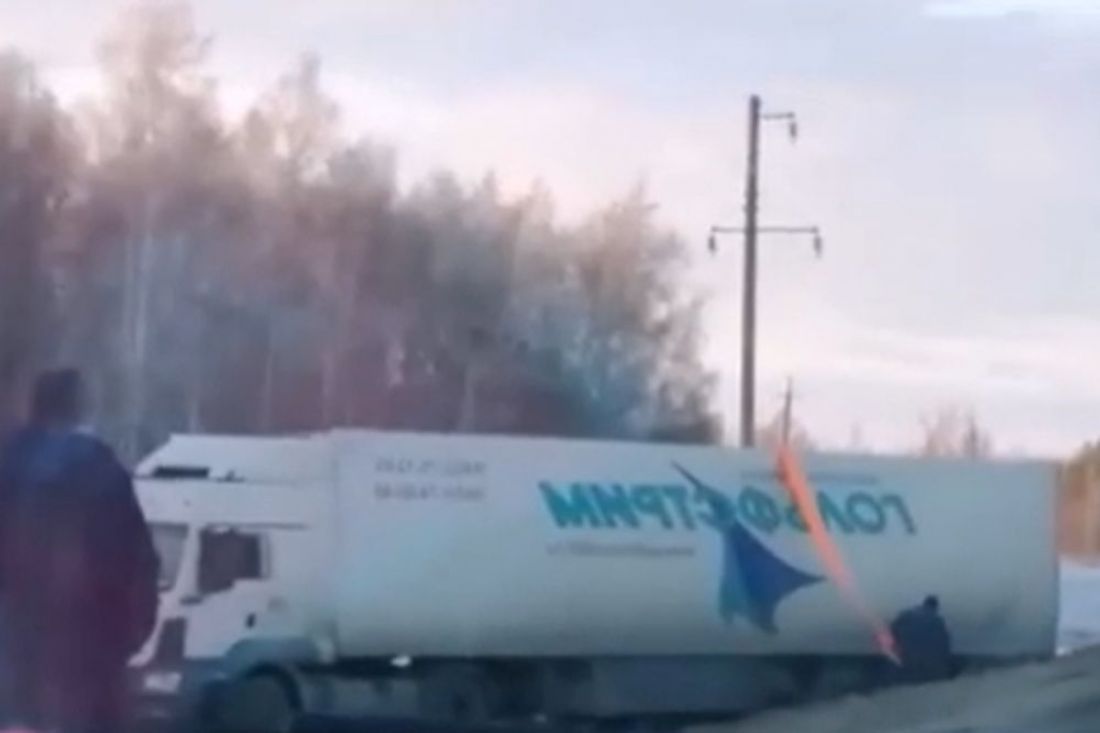 «Пострадавших нет», - сообщил свидетель дорожно-транспортного происшествия. К месту аварии прибыли сотрудники полиции и тягач, который вытащил фуру на дорогу.