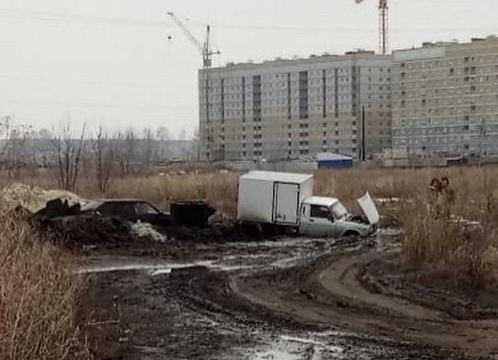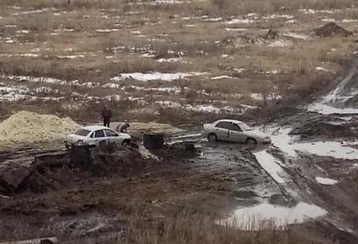 Пробки в районе Терновки настолько серьезны, что пензенские водители ищут экстремальные пути их объезда и безнадежно застревают в весенней распутице.