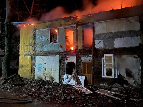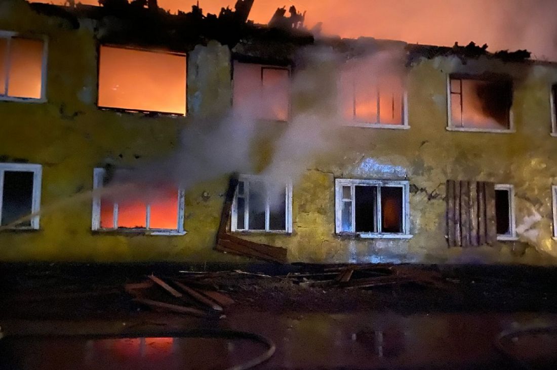 На снимках запечатлено горящее строение - в оконных проемах видно пламя, идет дым.
