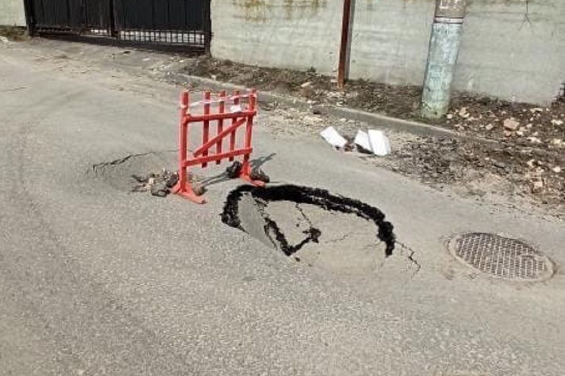 На кадрах видно, что там образовалась даже не одна, а две близкорасположенные друг к другу ямы. В той, что покрупнее, асфальт провалился окончательно, а во второй только просел и растрескался. Между ними выставлено предупредительное ограждение. Чтобы избежать негативных последствий, коммунальщикам стоит обратить внимание на проблему.