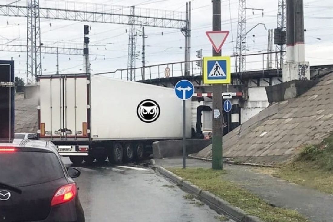 Инцидент случился сегодня в половине десятого часа утра. Грузовая машина пыталась проехать под железнодорожным мостом, но не прошла по высоте - в итоге она застряла.
