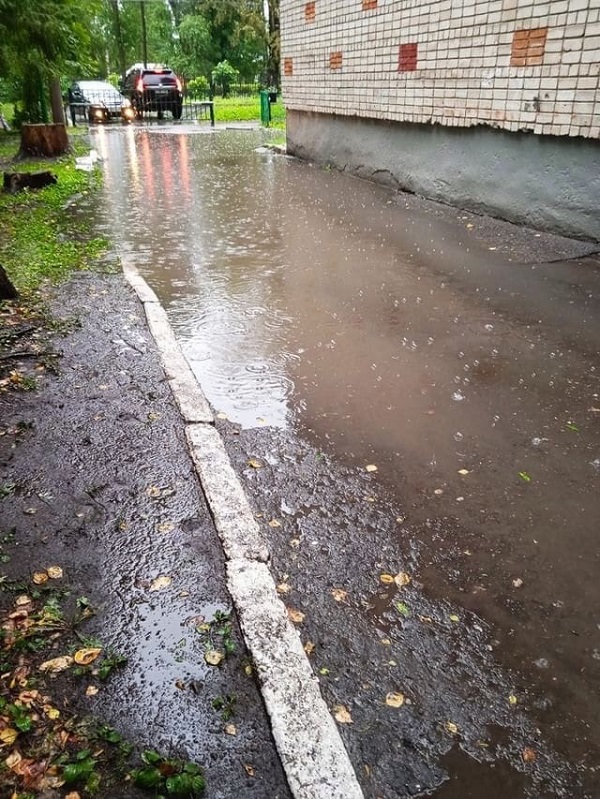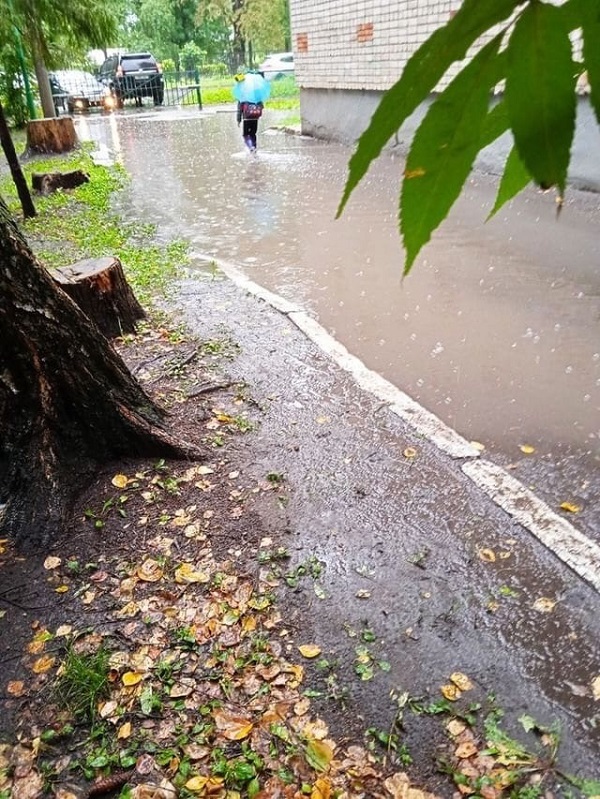 Она утверждает, что пешеходам сначала нужно встать в воду, потом перепрыгнуть на газон, и по газону, который тоже утопает в воде, проследовать дальше, дабы проскакать «зайцем» между лужами поменьше. После такого «квеста» школьники сидят на уроках с мокрыми ногами.