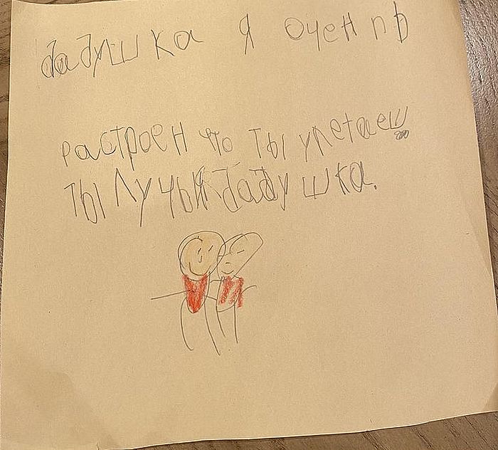 Малышева находилась в США, но ее поездка была краткой: она намерена была вернуться в Россию уже через 4 дня. «Послезавтра улетаю. А сегодня получила вот такое письмо от старшего внука. Растрогана до слез. Если вы получали письма от внуков, вы меня поймете», - делится эмоциями Малышева.