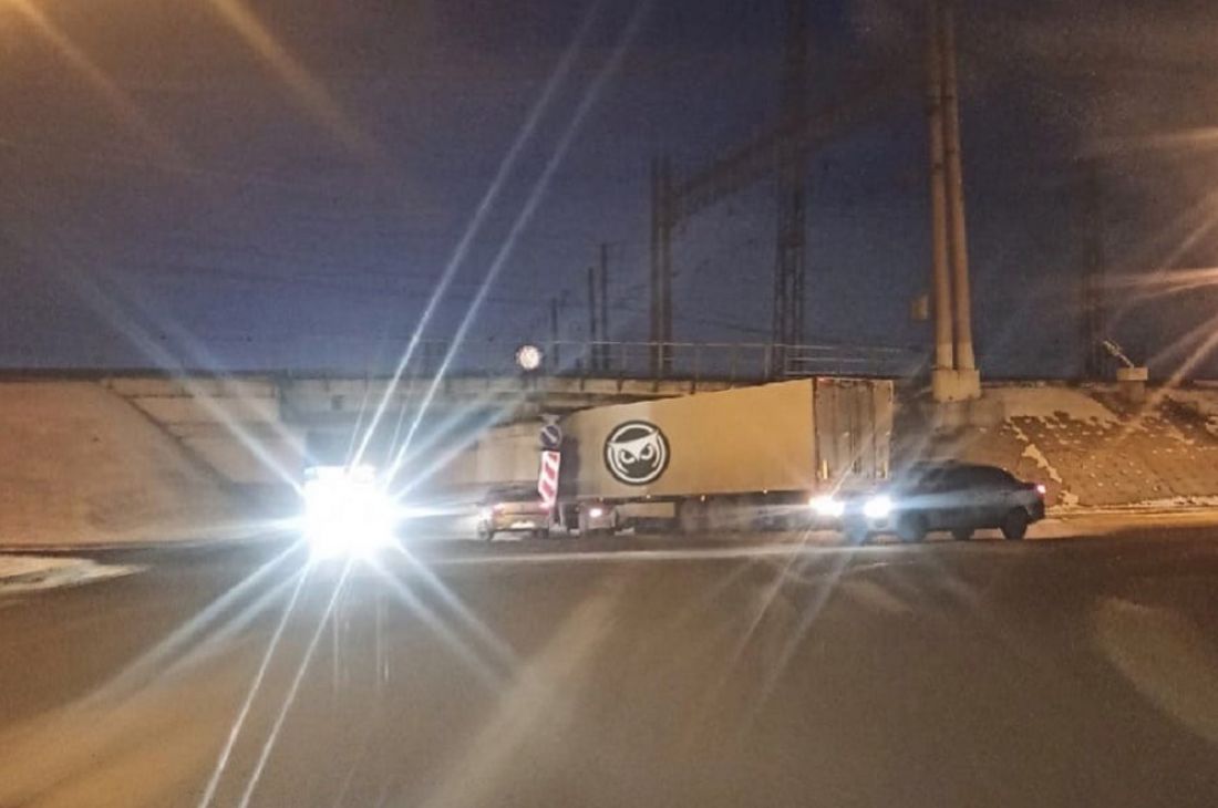 В Пензе очередная фура «залетела» под железнодорожный мост и застряла