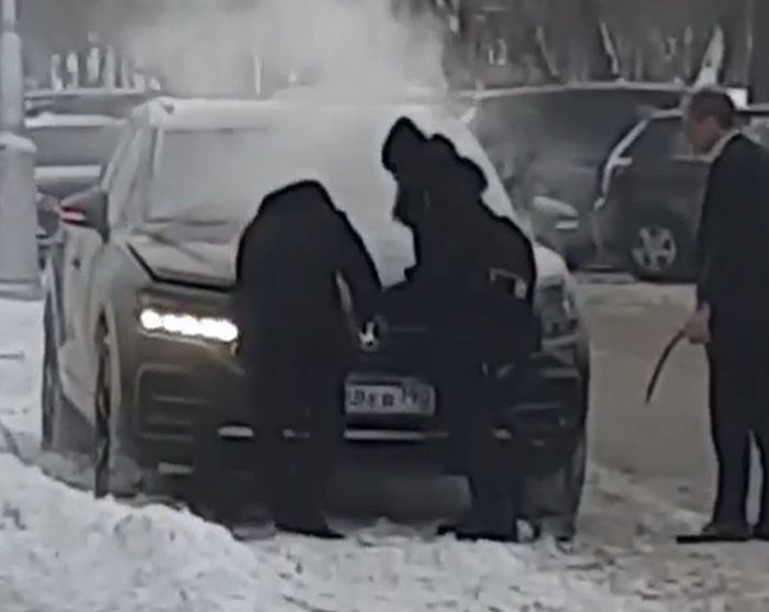 «Девушка из данного автомобиля побежала в гостиницу за помощью, после чего выбежал охранник заведения и оперативно потушил его. Также приехал и муж девушки. К счастью, все обошлось. Сотрудники МЧС прибыли на место происшествия быстро», - рассказал подробности автор поста.