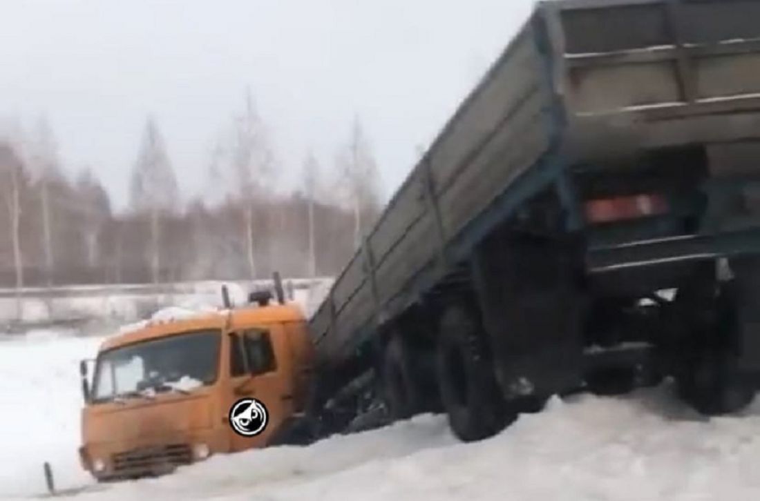 Судя по фотографии, с проезжей части улетел «КамАЗ». Кабина грузового автомобиля оказалась в кювете, а задняя часть осталась на обочине. Информации о пострадавших в настоящее время не поступало. Подробности уточняются в официальных источниках.