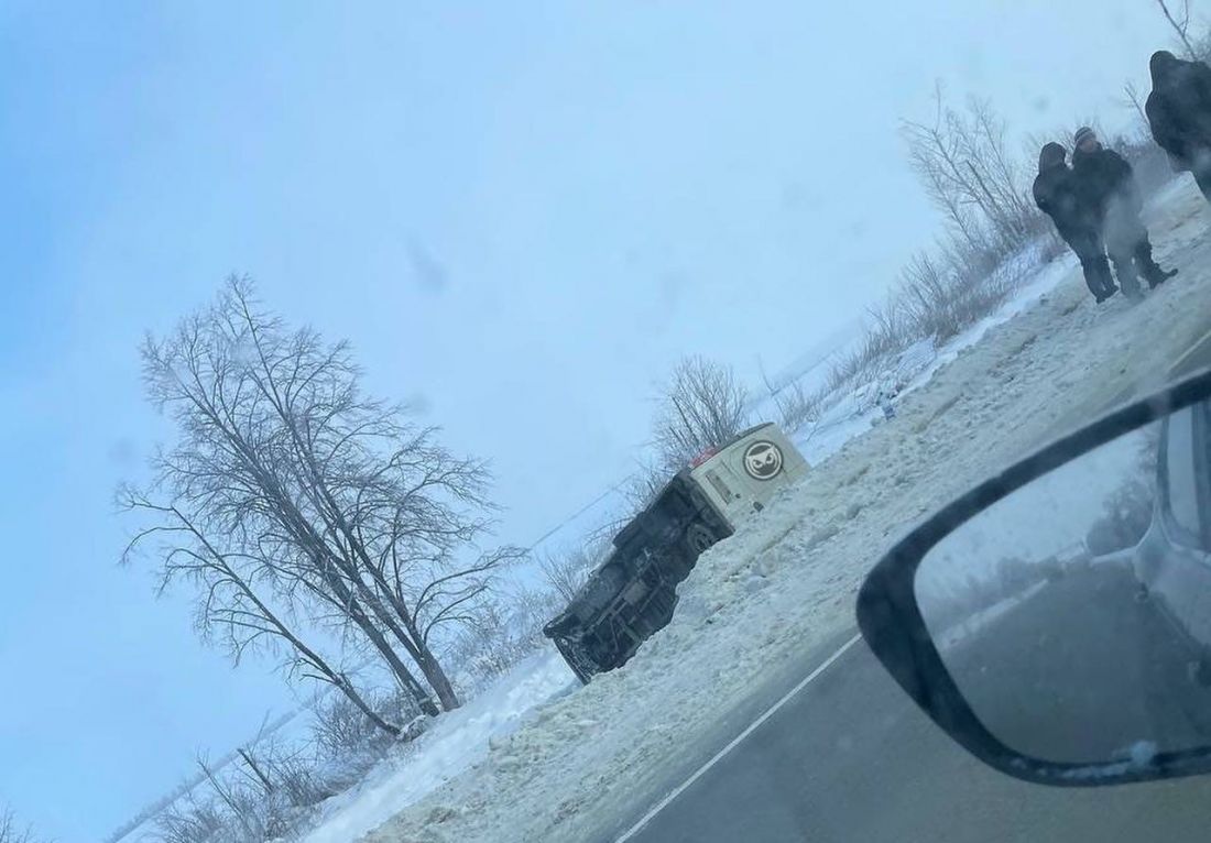 На трассе М-5 в Пензенской области фура слетела с проезжей части