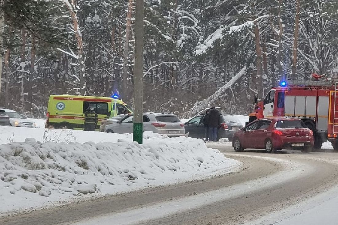 На снимках видно, что к месту ДТП прибыли сотрудники скорой помощи и пожарная машина. Сведения о пострадавших в результате аварии уточняются.