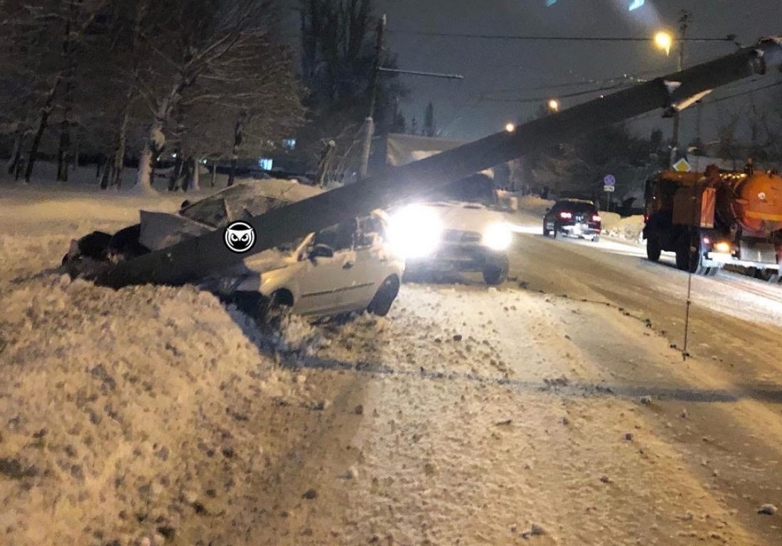 Вечером 4 февраля в Пензе произошло ДТП - автомобиль врезался в столб.