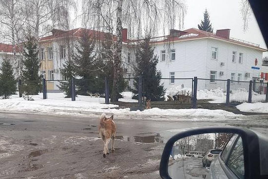 На территории станции переливания крови в Пензе заметили большую стаю бродячих собак