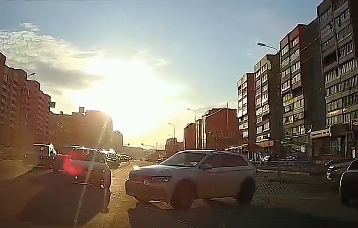 На следующем водителю другого автомобиля срочно понадобилось развернуться в непредназначенном для этого маневра месте.