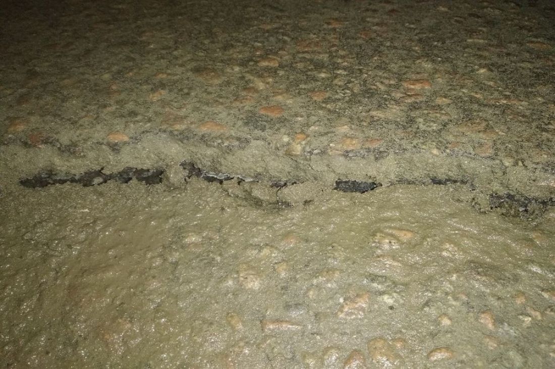 В подтверждение сказанному автор поста опубликовал фотографии и схему с точным местом проседания полотна.