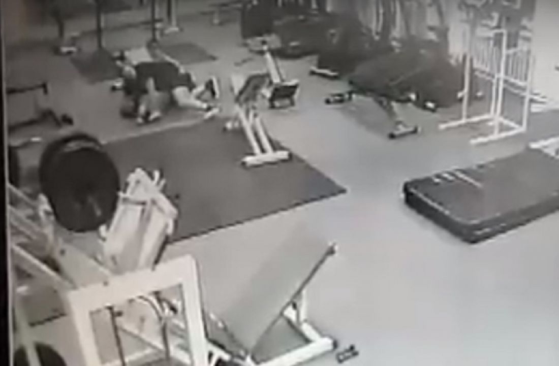 Мужчина занимался на беговой дорожке и заметил нападавшего в последний момент.
