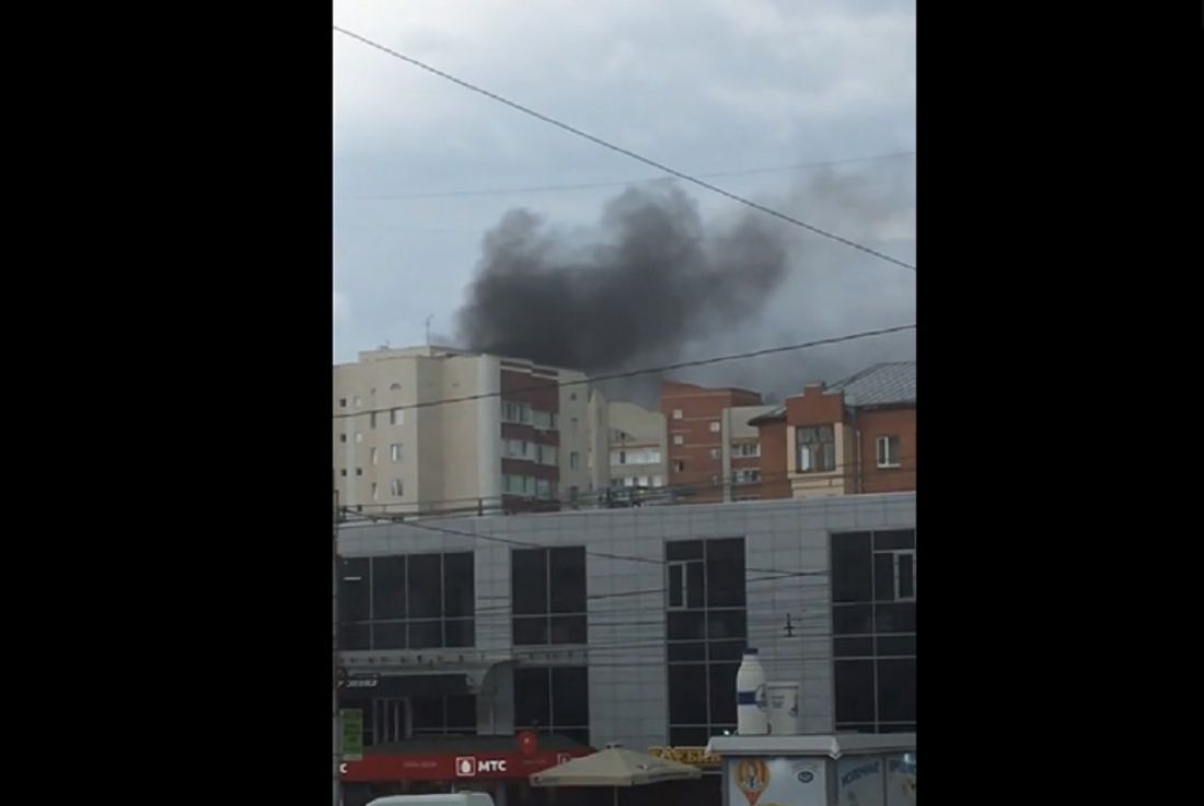 На снятых кадрах запечатлено, как со стороны многоэтажек валит густой столб черного дыма.