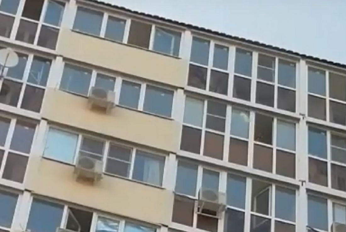 В Спутнике из окна многоэтажки вылетают пакеты с водой