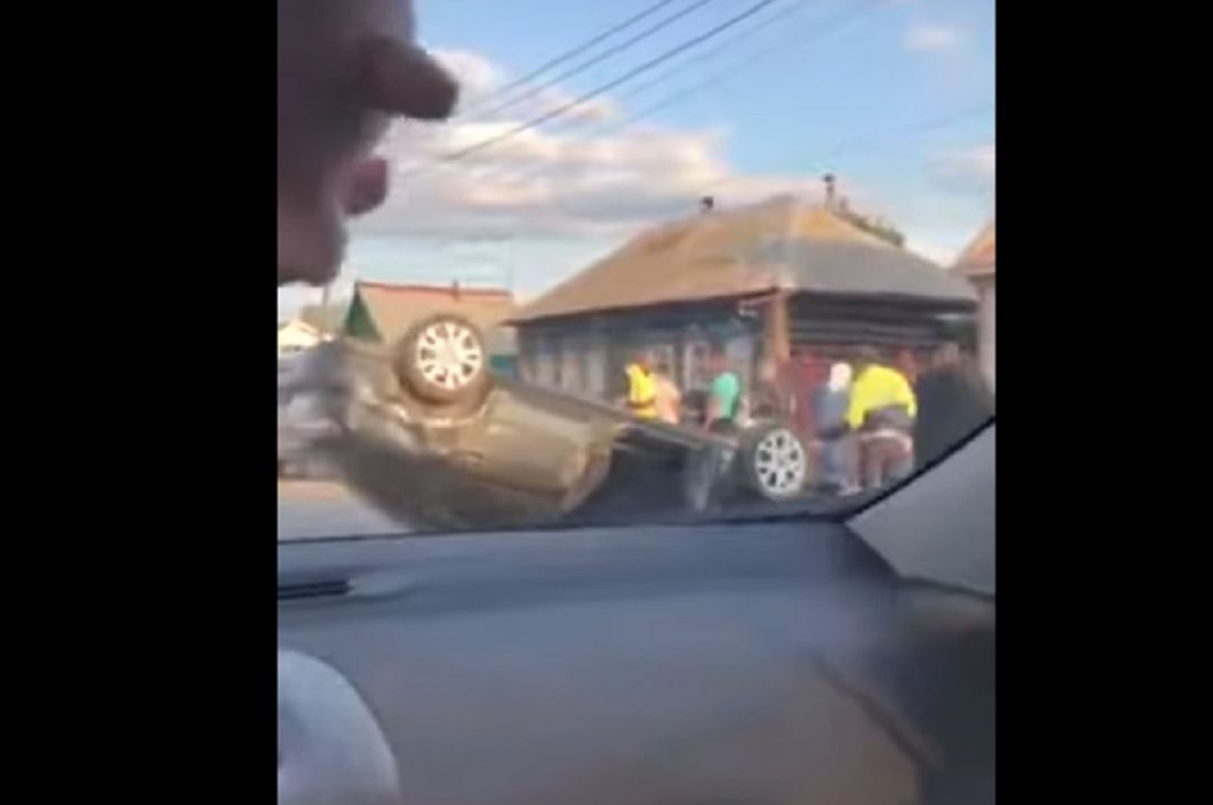 В Кузнецке легковушка перевернулась на крышу. Видео
