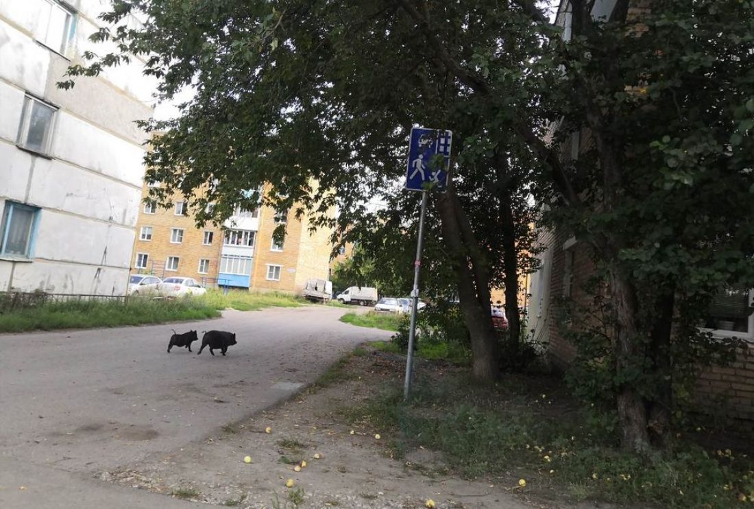 Появилась версия, что одомашненные свиньи совершили дерзкий побег с территории одного из находящихся поблизости домовладений. Однако некоторые пользователи паблика обратили внимание на то, что животные имеют темный окрас и больше похожи на диких кабанчиков.
