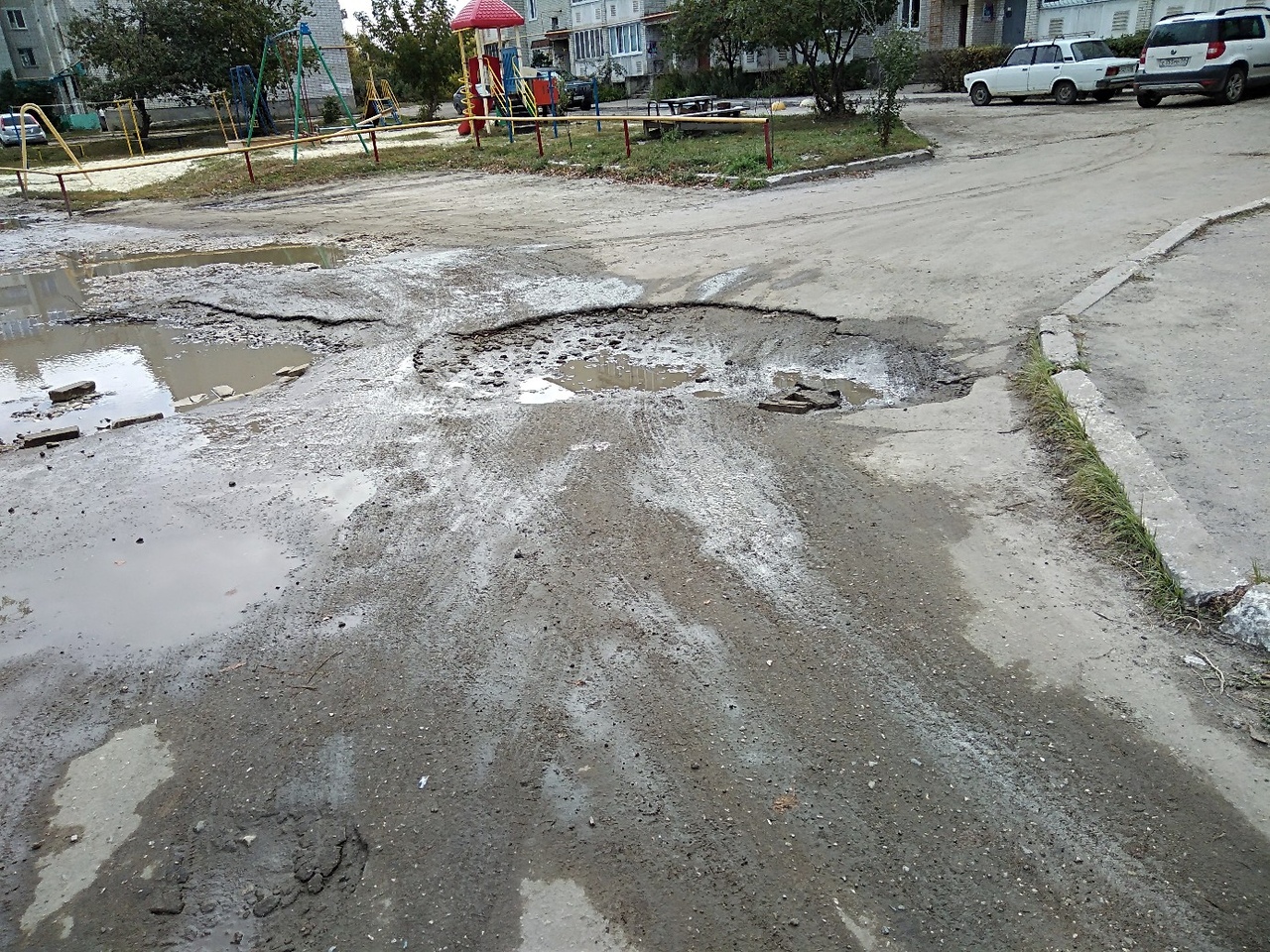 «Вот такая обстановка вокруг детской площадки по ул. Октябрьская, 69 и Пушкина, 12. В таком состоянии весь двор. Дождя не было 3 дня, а после дождя пройти и не извозиться невозможно. До остановки придется обходить через соседний двор, но и там не особо хорошо. Пожалуй, худший район в городе», - сообщил он в подписи к фотографиям.