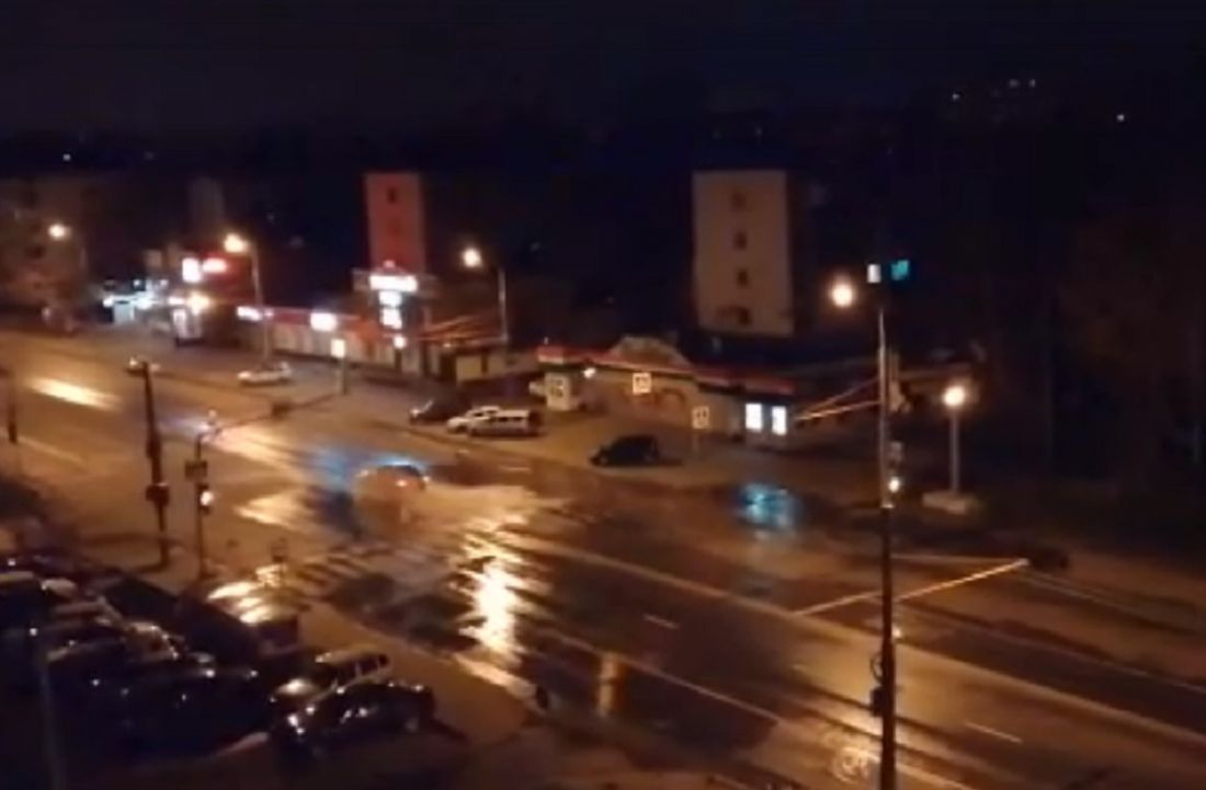 Пользовательница разместила видео, на котором запечатлена мокрая дорога. Машины двигаются по ней и наезжают на неровность – место вскрытия асфальта.