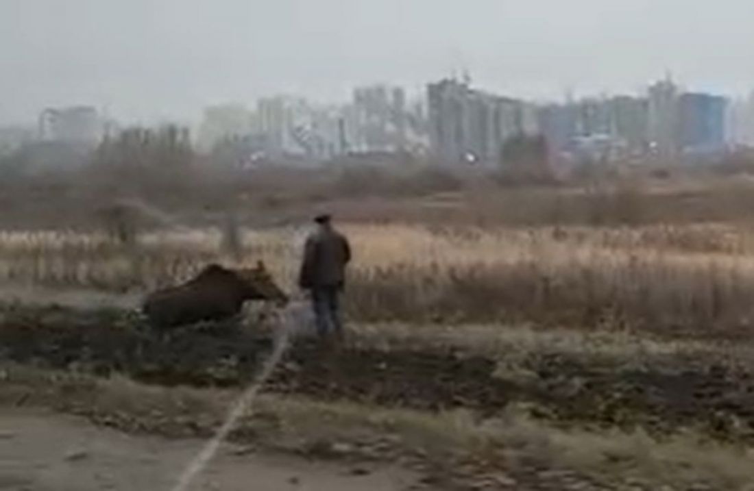 Сбитая под Пензой лосиха сразу после аварии была еще жива и мучилась. Видео