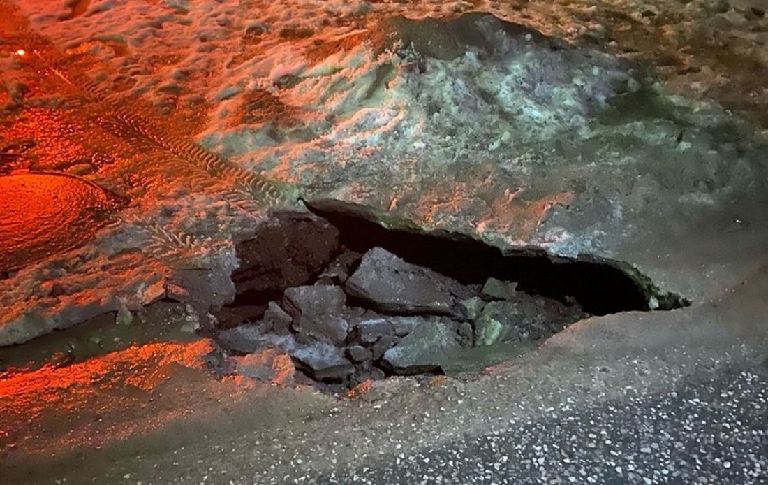 Судя по снимкам в соцсети, трещина в дорожном покрытии оказалась весьма серьезной.