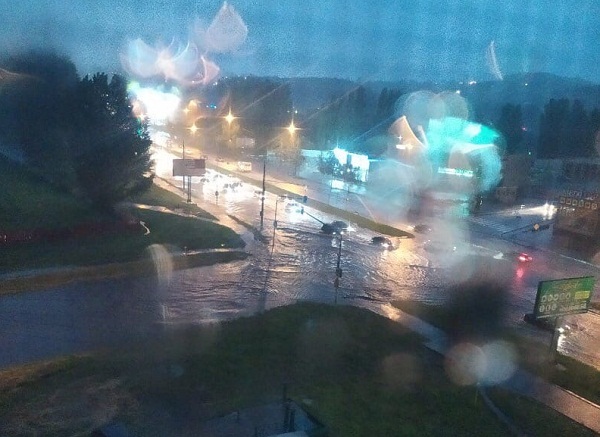 По состоянию на 21:58 дождь в городе не прекращается, слышны раскаты грома и видны вспышки молнии.