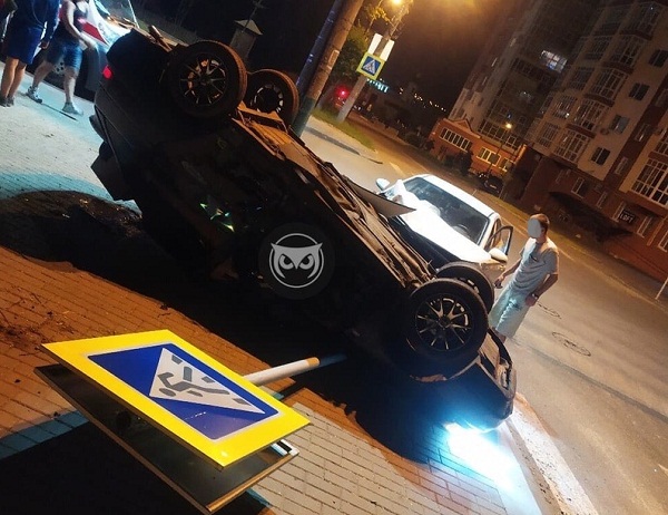 В результате аварии «двенадцатая» вылетела с проезжей части, перевернулась на крышу и сбила дорожный знак. Судя по всему, иномарка врезалась в боковую часть «ВАЗа».