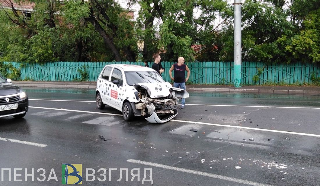 В Пензе автомобиль службы доставки искорежило при столкновении с маршруткой. Фото