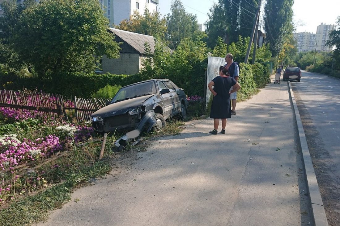 Автомобиль «ВАЗ-2115» вылетел с дороги и сломал забор, ограждающий участок возле частного дома. У машины сломан бампер, деформированы капот и крыло, разбиты фары, повреждено колесо.