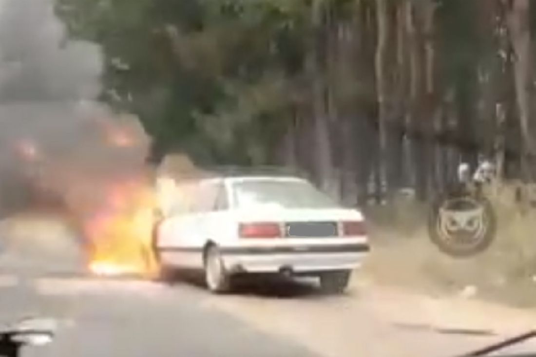 «Самое начало», - написал автор публикации. На нем видно, что огонь охватил моторный отсек автомобиля.