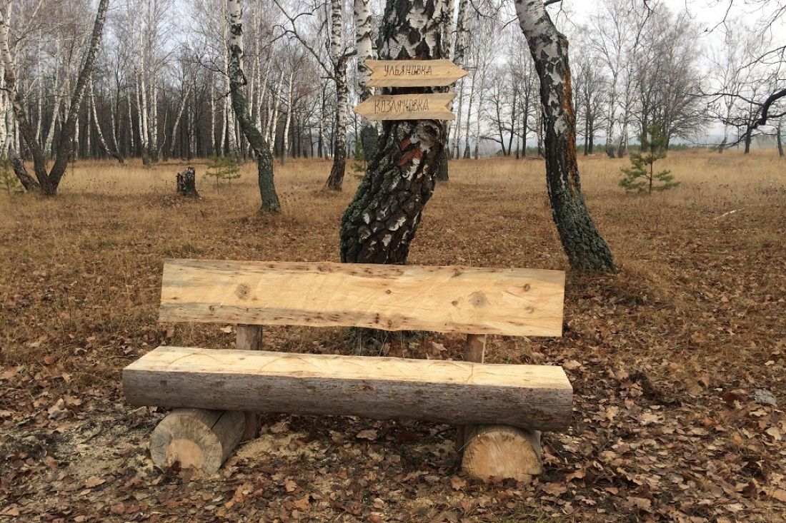 Такие «лавочки-навигаторы» помогут сориентироваться на местности и найти дорогу до ближайшего населенного пункта. К примеру, в Кузнецком лесничестве скамейка указывает выход из леса к селам Ульяновка и Козляковка.