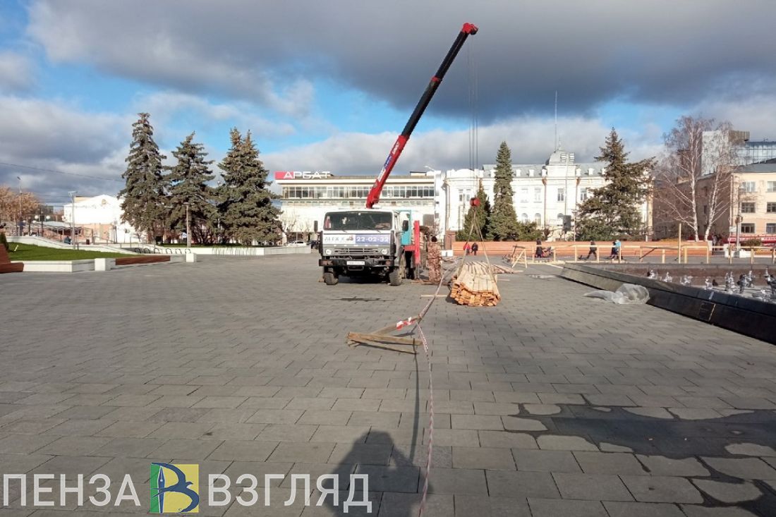 Главный пензенский фонтан, реконструкция которого была проведена в этом году, вновь окружен рабочими, автокран разгружает стройматериалы. Подрядчик приступил к работам по укрытию гидротехнического сооружения на зиму.