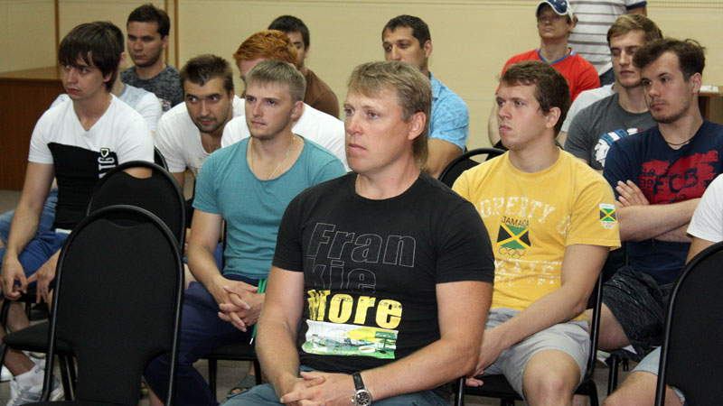 Также Вадим Богацков представил игрокам тренерский штаб команды и медицинский персонал: «Главный тренер у нас Сергей Григорьевич Лопушанский. Помогать ему будут старший тренер Андрей Агапов и тренер Валерий Кукушкин. Доктор – Александр Пушкарев, массажист – Алексей Ермаков».