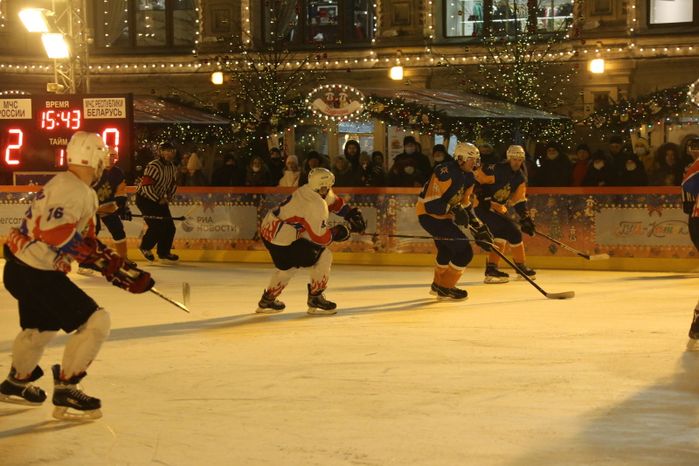 На Красной площади 20 декабря состоялся товарищеский матч между хоккейными сборными МЧС России и Беларуси. В составе российской команды сыграли сразу восемь игроков команды «Заречные бобры» из Пензенской области.