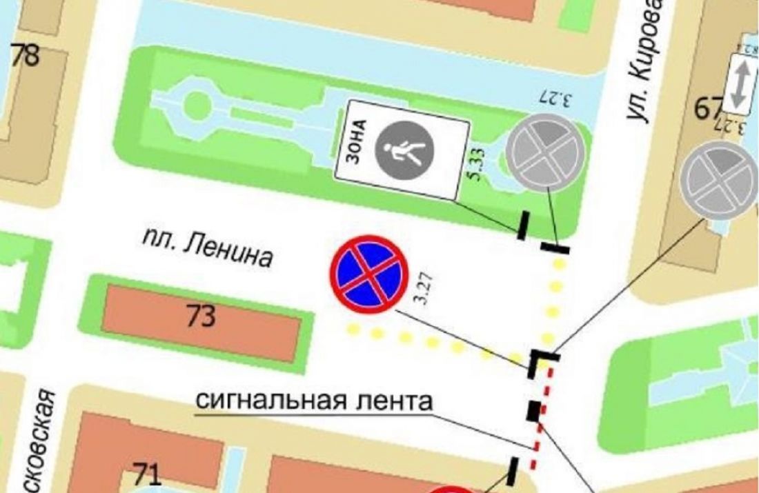 - на площади Ленина и проезда по площади Ленина от ул. Кирова до ул. Московской в период с 22.00 часов 20 апреля до 22.00 часов 21 апреля 2021 (кроме специального транспорта).
