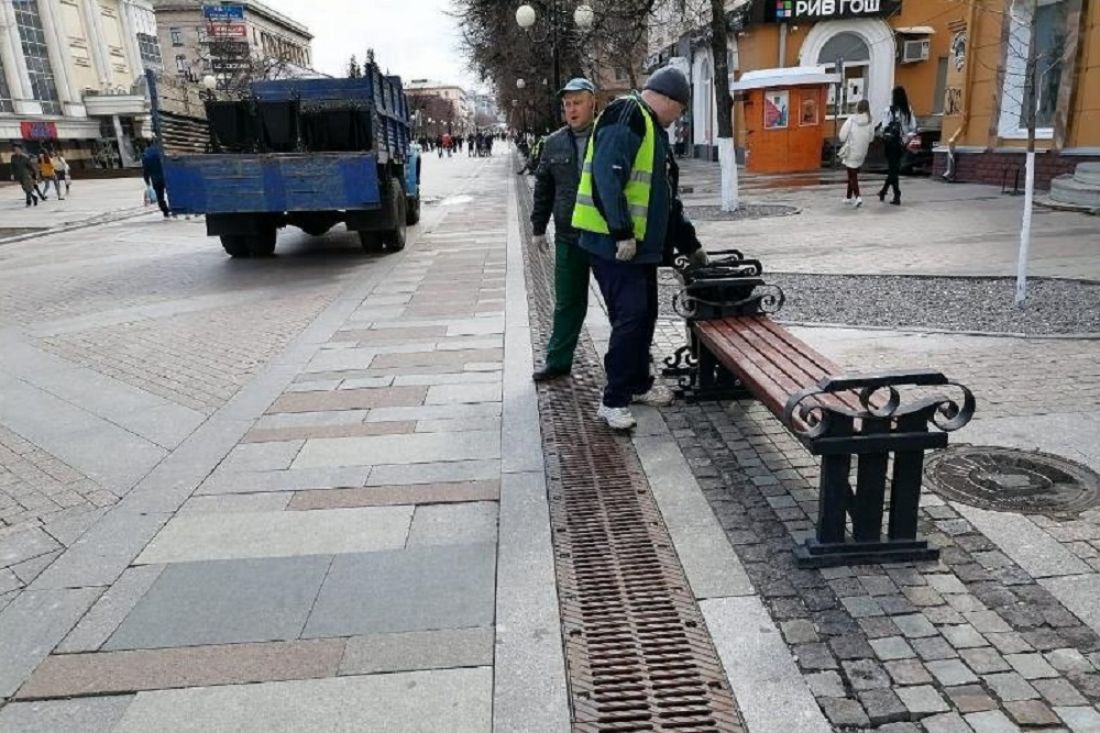 После зимнего хранения на центральную улицу города работники МУП «Зеленое хозяйство Пензы» возвращают скамейки и урны. До 9 мая малые архитектурные формы займут свои места во всех общественных пространствах.
