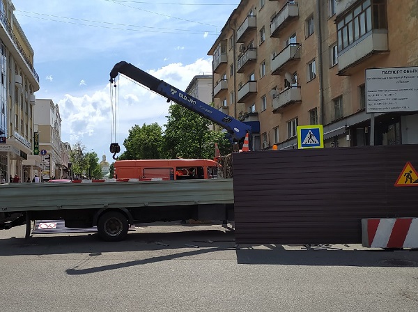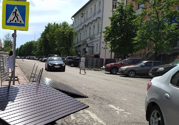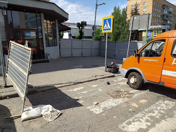 Сейчас рабочие производят перекрытие улицы забором. «Опасная зона! Проход закрыт!» - гласит надпись на табличке, прикрепленной к забору. Таким образом, одна сторона улицы будет перекрыта для пешеходов.