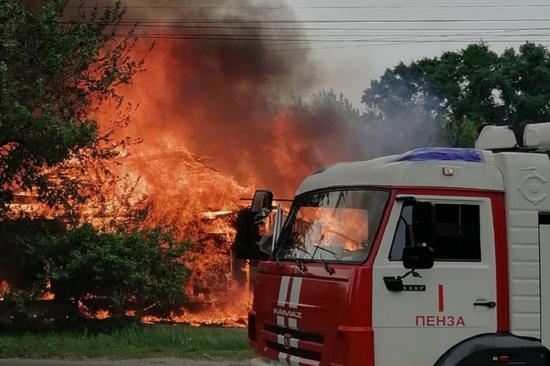 Кадры с места событий появились в группе «Сова Пенза авто» социальной сети «ВКонтакте». На видео зафиксировано, как из деревянного строения вырываются языки пламени и черный густой дым.