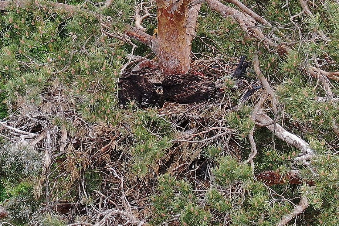 Как отмечает пресс-служба министерства, в момент обнаружения в гнезде находились два оперившихся птенца. Специалисты подчеркивают, что орлан-белохвост - самая крупная из хищных птиц, которые гнездятся в нашем регионе.