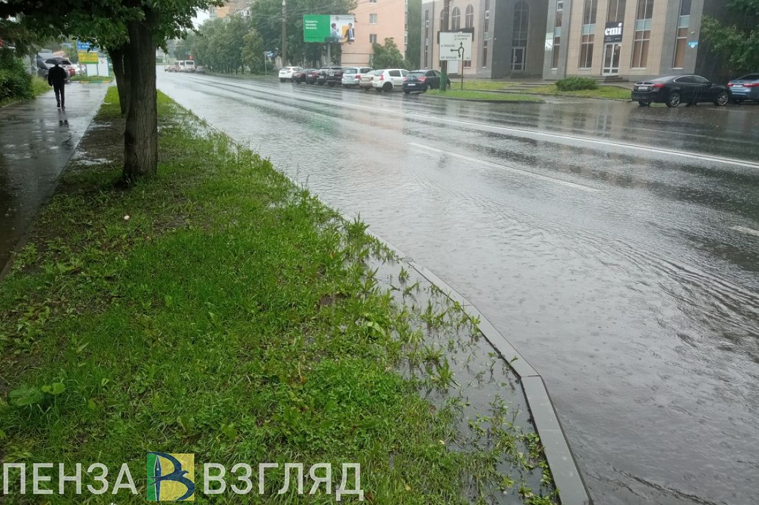 Так, дождь не обошел стороной одну из центральных улиц города – улицу Суворова. В редакцию «Пенза-Взгляд» читатель прислал видео, снятое на участке между областной филармонией и монументом «Глобус» во время выпадения осадков.